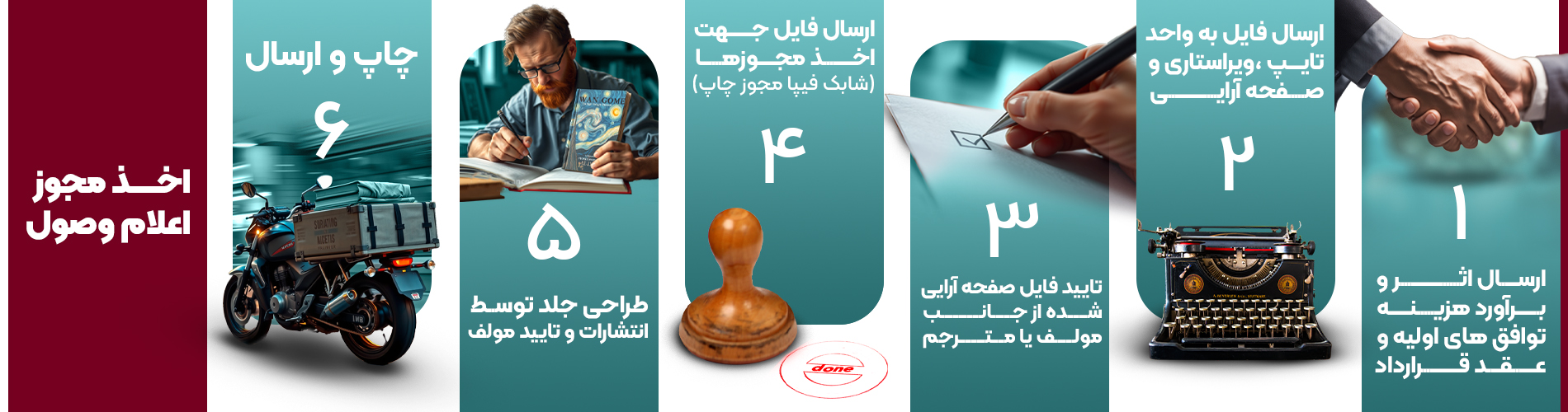 ۳. چاپ صفحات: هر ۸ صفحه کتاب روی یک زینک حک میشود. پس از چاپ، صفحات تا میخورند. در مرحله صحافی، صفحات به ترتیب قرار میگیرند.
